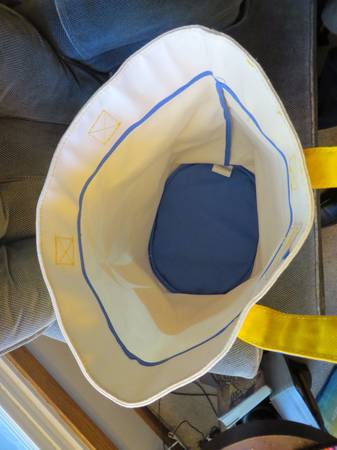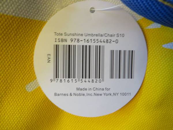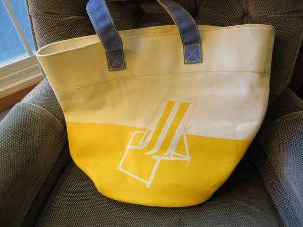 Barnes & Noble canvas tote S10 retired. Yellow and white, with lawn chair design. Blue canvas handles with yellow lining and stitching. New with tag. $10