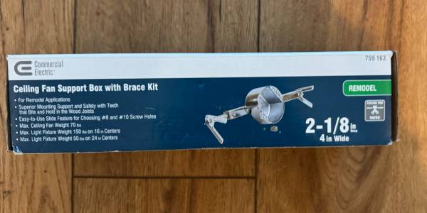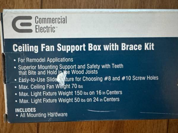 Commercial Electric Ceiling Fan Support Box with Brace Kit For Remodel Applications