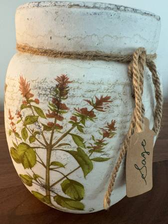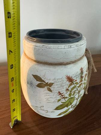 Decorative Herb Plant Container Pot White pot with sage design and rope accent. Great for Herbs, Sage, lavender etc. 5” Diameter ~ 8” Height Container was used for one season only. Great pot for...