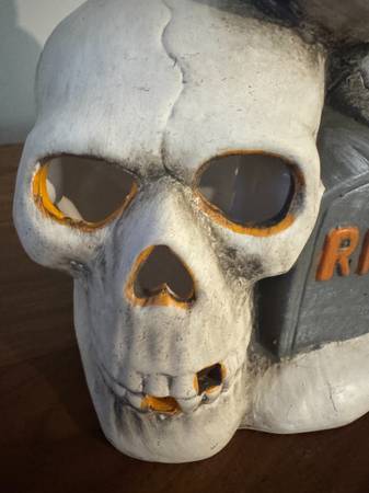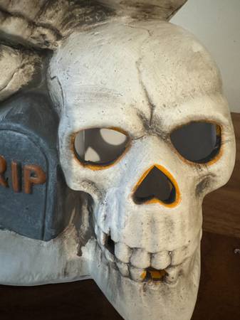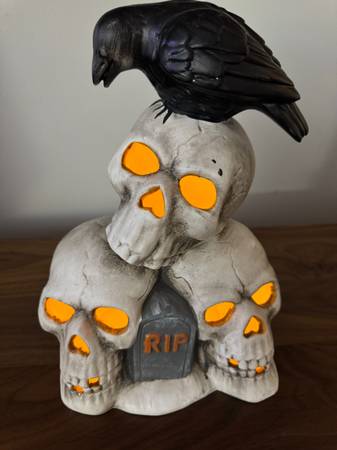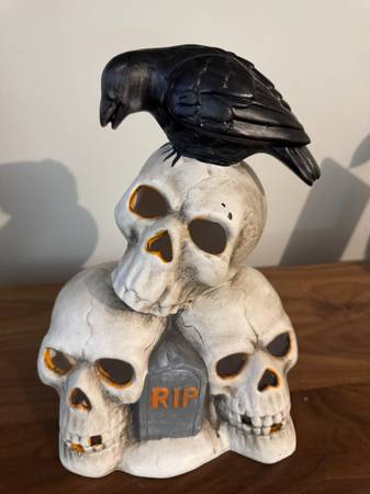 Gothic Raven Crow Bird Perching on Stacked Skulls with LED Night Light Statute NWT