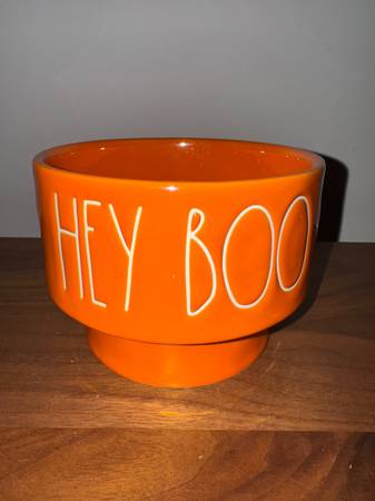 “HEY BOO” BY RAE DUNN Artisan Collection Magenta ORANGE HALLOWEEN CANDY OR PET BOWL DOG AND CAT BOWL 6” W by 4.5” H NEW See include "more ads by this user" link