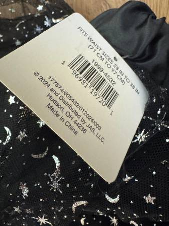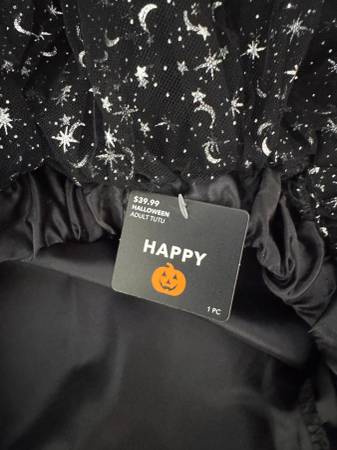 JAS LLC Adult Halloween Costume Tutu Black w/ Silver Moons & Stars New