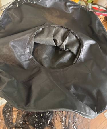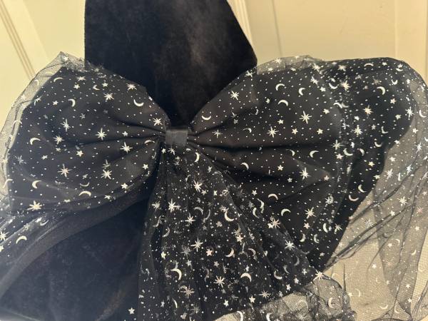 The JAS LLC Adult Halloween Costume Witch Hat in lack with silver moons and stars is a stylish and fun for Halloween parties or themed events. Made from tulle material.