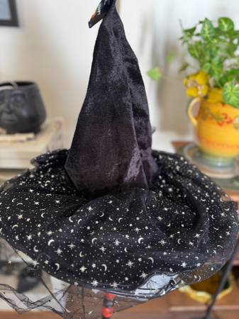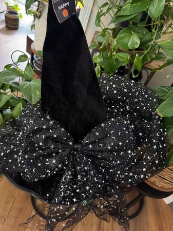JAS LLC Adult Halloween Witch Hat Black w/ Silver Moons & Stars New