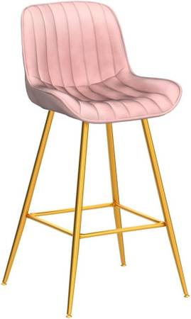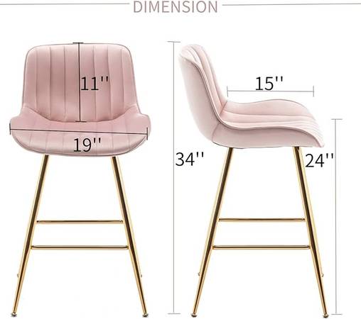 • Sturdy and Comfortable. Counter-height bar stools are filled with high density foam and upholstered with skin-friendly velvet fabric, making it a very comfortable seat. Spacious seat design also adds comfort to this bar stool, bringing impeccable sitting experience to various body types. Gold plating leg frames are sturdy enough with 25.5cm in diameter of each leg. This barstool set of 2 can bear the weight up to 300lbs.