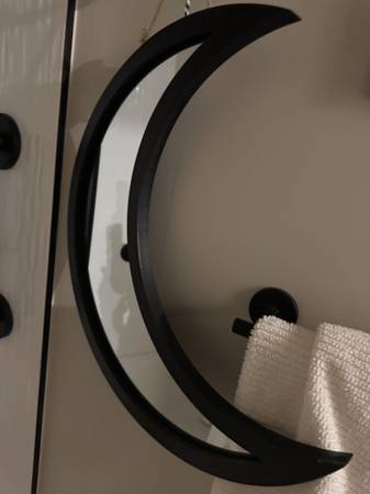 PLACE & TIME BLACK MOON CRESCENT_ECLIPSE MIRROR NEW FRAME IS WOOD NO SCRATCHES, THE BLEMISH SEEN ON THE MIRROR IS JUST A SMUDGE FROM HANDLING AND WIPED OFF. GREAT HALLOWEEN DÉCOR OR AS AN ACCENT...