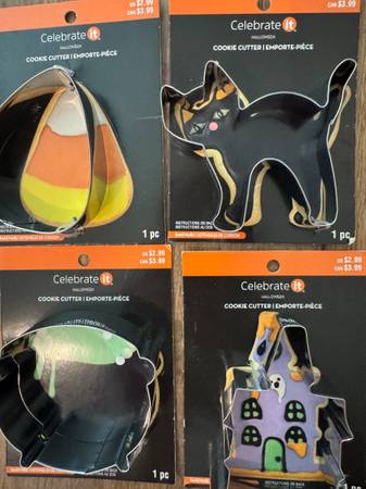 Set of 4 Celebrate Cookie Cutters (Cauldron, Cat, Haunted House, & Candy Corn) New