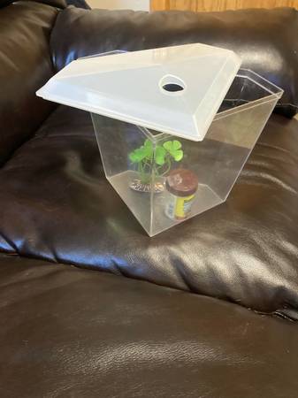Fish bowl, Small Terarrium for Guppies or bugs, Plastic and Glass Fish Tanks, Rocks as shown, plants, Handle on Rectangle Planetarium Can be used for Plants as well! Tropical fun! Prices vary on...