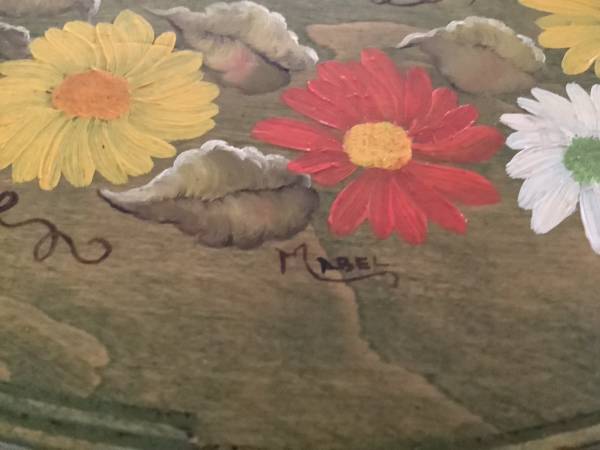 Vintage Folk Art Circular Bentwood Box Hand Painted and Signed By Artist Mabel. Round Wooden Box With Lid Folk Art. Great decorative piece for your home. Email with questions or to arrange for a pick up in Shakopee. Measures 10.5 across but 5 inches high.