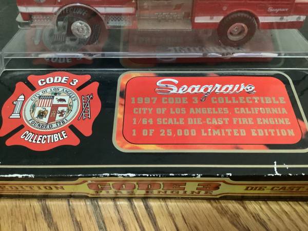 Code 3 Collectibles City of Los Angeles Seagrave Engine 18 - #02450 Code 3 Collectibles City of Los Angeles Seagrave Engine 18 - #02450. Limited Edition. XX/25000 Die-Cast Collectible 1/64 Scale In...
