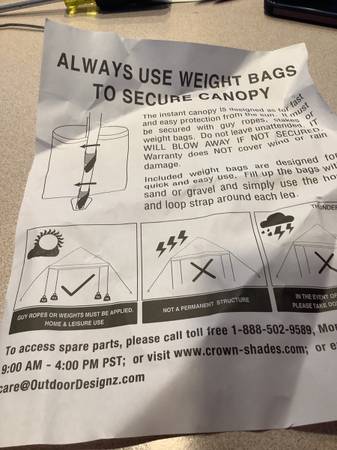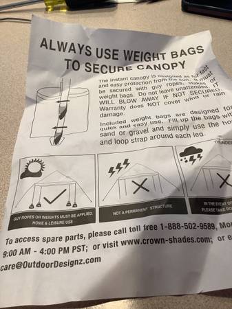 4 Empty sandbags - Fill with sand, gravel, stones or bottled water (not for liquids)