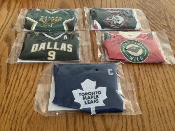 Great collectibles for the avid hockey enthusiast. All are NEW NEW NEW, still sealed. Includes: Toronto Maple Leafs Dallas Stars Dallas (Mike Modano) Buffalo Sabres Minnesota Wild Firm on the price....
