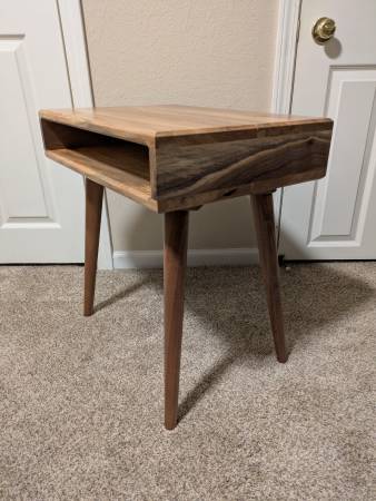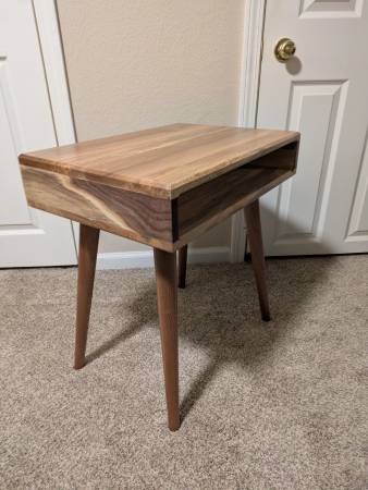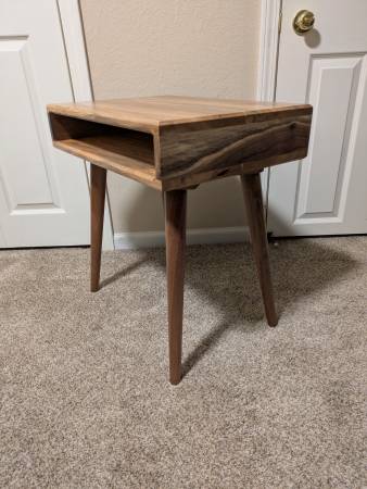 Custom Maple and black walnut table. The table measures 15.5 in deep by 22 in wide and stands 23 in tall. Side table, coffee tables, and table. 200