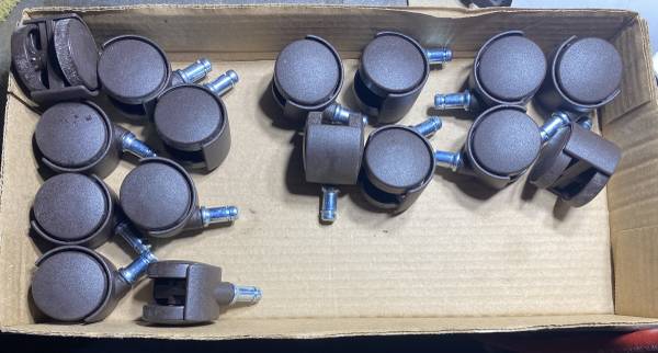 For sale 2" grip neck caster wheels off kitchen chairs. 7/16 x 7/8" stem. Were on the chairs for about a week before we switched to rubber wheels for use on wood floors. 16 of them. $24. 81