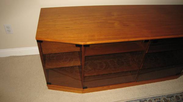 Teak media console in excellent condition. Approximate dimensions: 64"W x 24" D x 23" H. Asking $300 cash Media TV entertainment console center