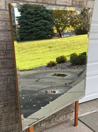 Heavyweight clean and clear mirror with 1” bevel. Measures 42” x 40”. Came off of a furniture piece and is currently mounted to a removable back board, included if you want it. Great mirror for your bedroom, bath, dressing area or ???. $125 with pick up in Lakeville / Apple Valley area. Current replacement cost around $350.