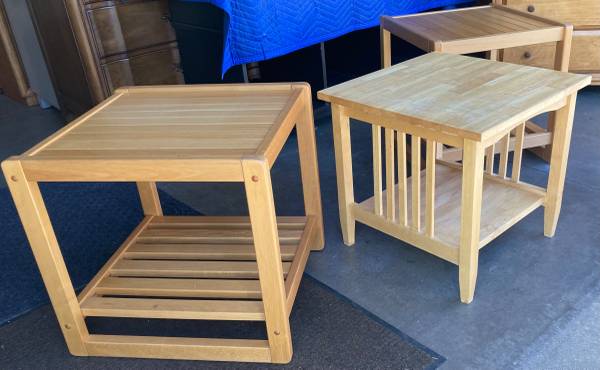 Beautiful pair of solid wood tables that are in very good to excellent used condition. Measures 19.5” x 21” x 20” tall. Natural finish is in great condition and has been enhanced with beeswax and Citrus oil. $85 each or $150 for the pair with pick up in Apple Valley / Lakeville area.