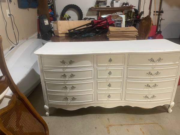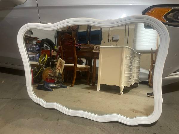 $40 for the set. Desk Dimensions (Overall): 30.04 Inches (H) x 43.15 Inches (W) x 19.45 Inches (D) Dresser 61” wide x 21” deep x 32” tall Mirror is 32” high x 48” wide