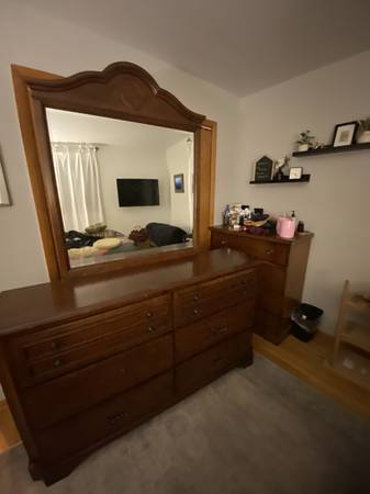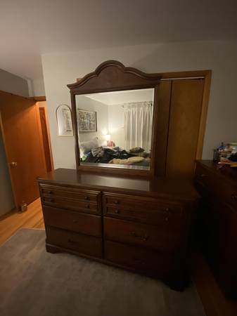 Condition: Used - like new Color: Brown Number of Drawers: 6 Finish: Mahogany Finish Dresser Approx: 70"W/40"H/ 24"D Mirror: 46"W/40"H OBO