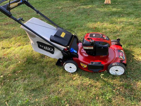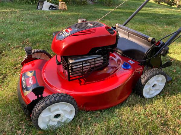 Toro 22" cut Recycler 7.0hp Briggs & Stratton Quantum engine, Personal Pace self propelled, steel deck with deck wash port. Mulcher, and bagger. Great condition, very clean machine. Comes with bagger bag. Ready to mow, bag, and do your fall clean up chores!