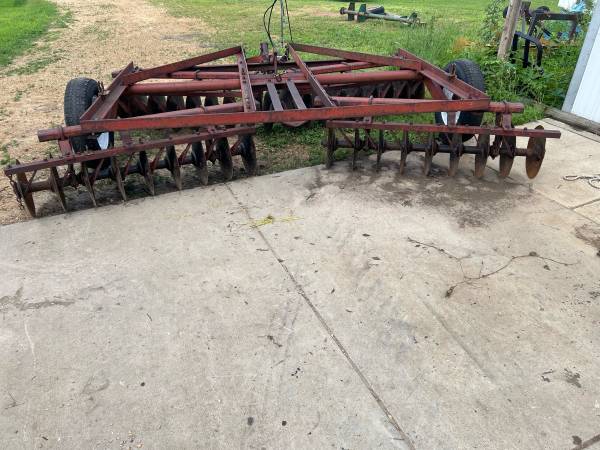 International #46 Disk Harrow 12’ Has all scrapers, lift cylinder, new tubes and trailer rated tires, 16” disks