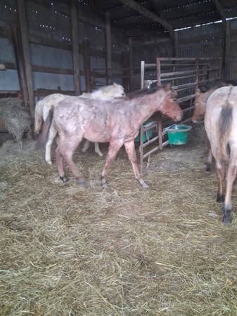 Several Quarter Horse weanlings. Bayroan, blueroan,dunroan. Out of a grandson of Rooster. Performance bred. Very correct and athletic. Most will mature around 15 hands. Open to offers. Call Five 0...