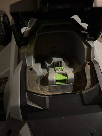 2 years old. Mulch, bag, pick up leaves. Quiet operation. Excellent except for current blade will need sharpening.