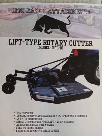 New 10' HD 3PT Rotary Mower with slip clutch. HD Gear Boxes. Contact Dean with any questions. Located in Lakeville, MN. delivery available if required. 5', 6', 7', 8', & 10' available.