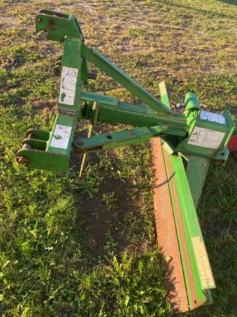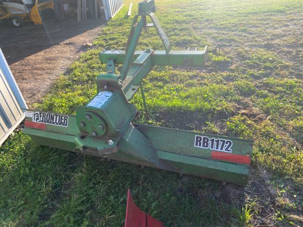 Frontier 3 point blade Model RB1172 6’ wide Reversible Could use a hydraulic cylinder to adjust the angle Also able to adjust the pitch/ angle Several angle options and more Very heavy and still in...