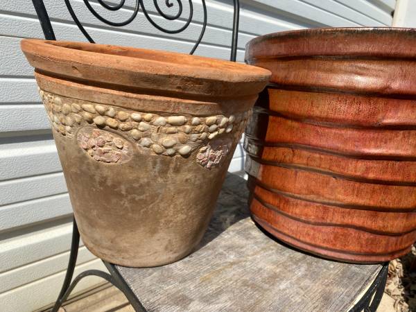 Other 2 plain pots pictured together, 12 wide x 10 high and 10 3/4 high x 9 1/2 high.