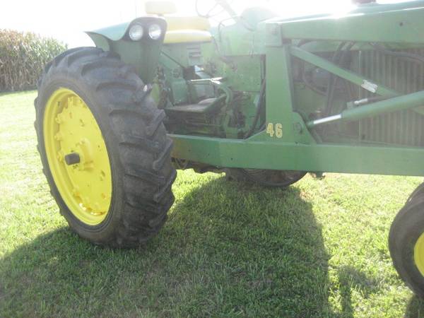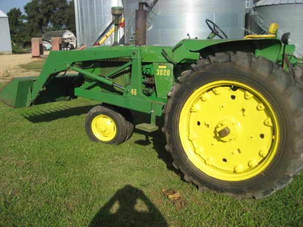 3020 Power Shift-gas, 15.5-38 all tires excellent, tachometer works & registers, 2 remotes plus splitter, 3point hitch, 540-1000 PTO best carburetor, engine heater, power steering, Operator Manual, Deere 46A loader with 60 inch fork for large bales & manure also dismount stands. show contact info