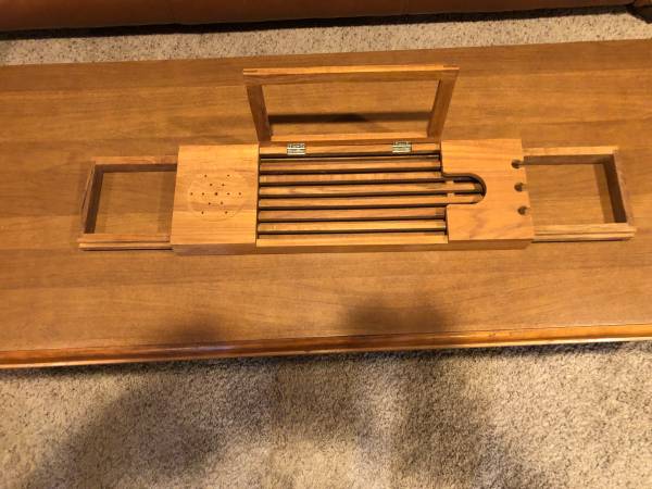 Teal wood Bathtub caddy. Never used. Purchased for $64. Only $25! Cabin, bathroom, tub, wine, book holder, laptop holder, soap