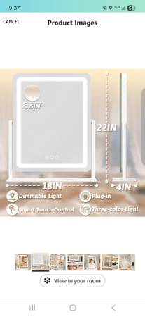I bought this mirror for a vanity I'm building my daughter, but chose to use a different product. It's basically brand new, as she never used it. No marks, scratches, or damage. 3 light settings....