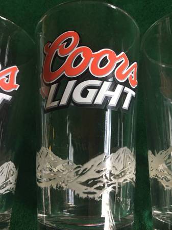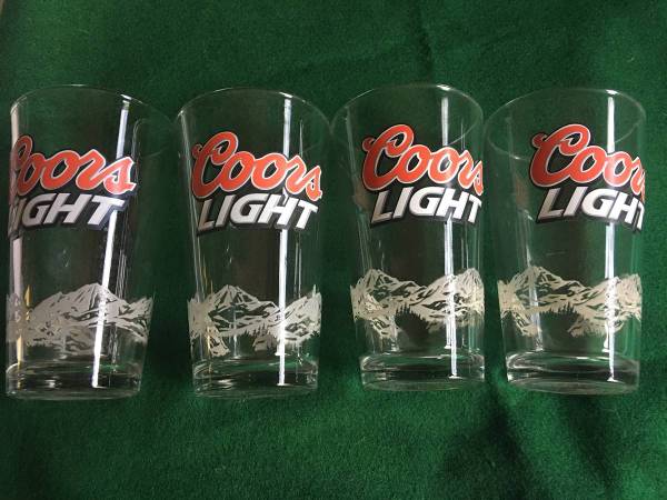 New Coors Light Beer Glasses. 4 different styles of Coors Light glasses with logo on top and the Mountains around the bottom of the glass. Mix or Match. Only $5