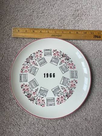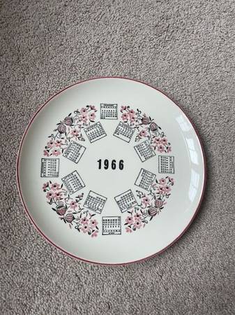 1966 Calendar Plate from a smoke-free, pet-free home. Vintage, Collectible, 10" with dark rose flowers and edge trim. Like New condition. $25 cash only.