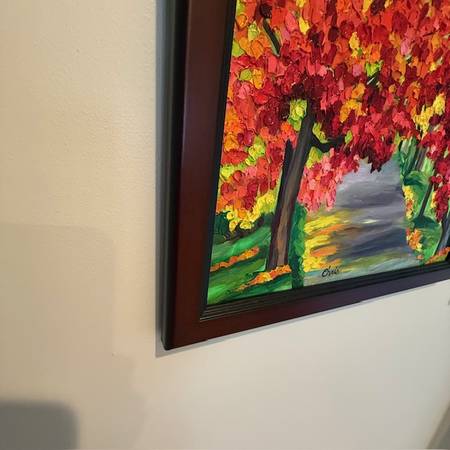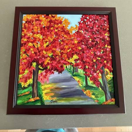 Original Acrylic Paint Framed Fall Autumn Canvas 18.25" Square...