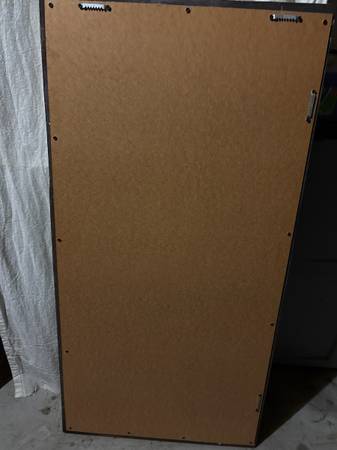 Excellent condition and well made. Can be hung vertically or horizontally. Wood or wood & metal, can’t really tell. Heavy.Inside of frame is 14” x 31”.