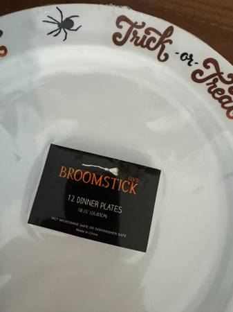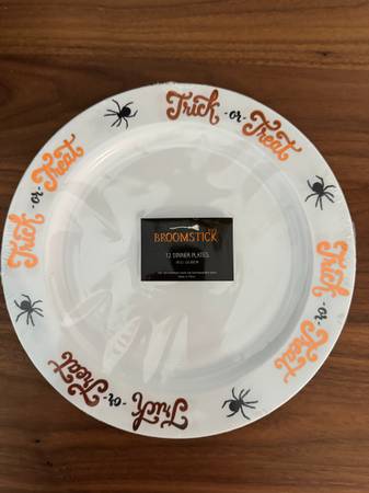 12 Broomstick BLVD TRICK or TREAT Spiders Plastic Dinner Plates NEW 10 1/4"