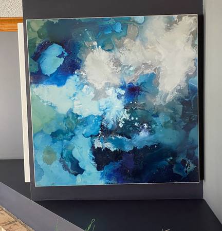 Abstract Art Blues, Grey and Green Price for one $65 Make me an offer for both.