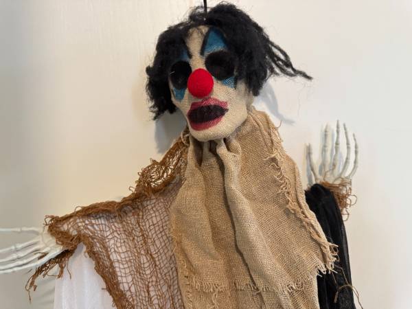 Ashland Halloween Clown Reaper Faucheuse Clown 3 ft New Creepy hanging clown decoration with skeleton hands and tattered fabric. See include: include "more ads by this user" link