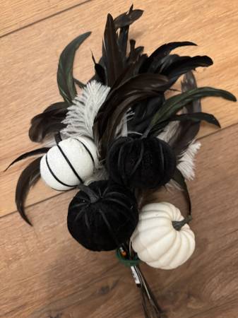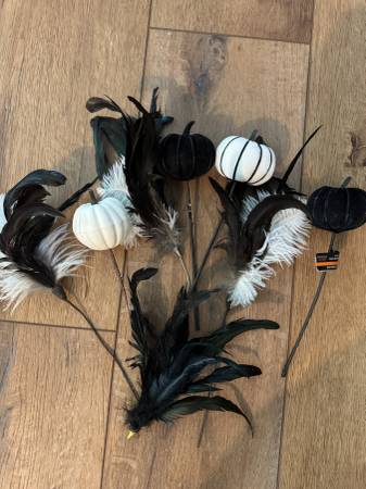 Bunch of Black & White Pumpkins & Feathers Picks for Arrangements NEW See include: include "more ads by this user" link