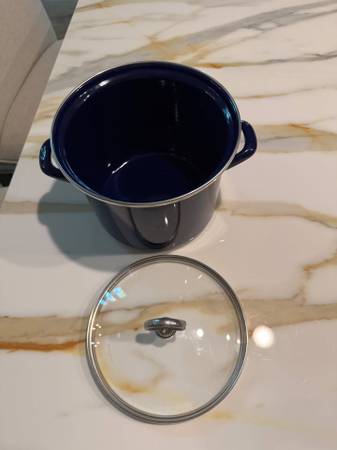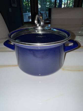 Vintage Chantal Cobalt Blue Enamel on Steel Dutch Oven Stock Pot. This is a 2 Qt stock pot. This item is pre-owned and very gently used. Looks like it was only used maybe once or twice.