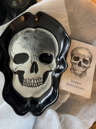 CREEPY SKULL HALLOWEEN SERVING PLATTER $25 BLK/SILVER & 32 MATCHING...