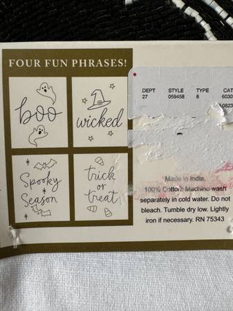CUPCAKES & CASHMERE AT HOME NAPKINS (4) 100% Cotton HALLOWEEN PHRASES WHITE BLACK GOLD 18 X 18 NEW