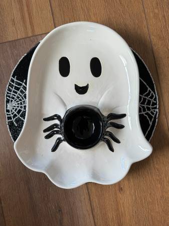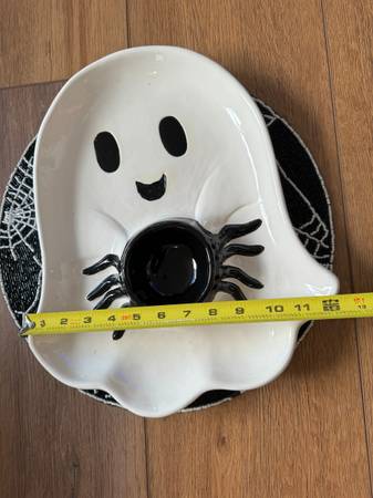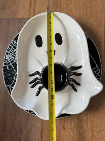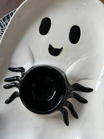 Ghost & Spider Veggie, Fruit, or Chip & Dip Appetizer Serving Platter NEW See: include "more ads by this user" link Dimensions: Approx 12” x 15” (See photos) Material: Stoneware/Ceramic...
