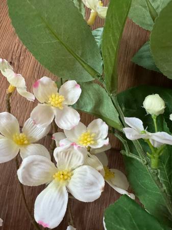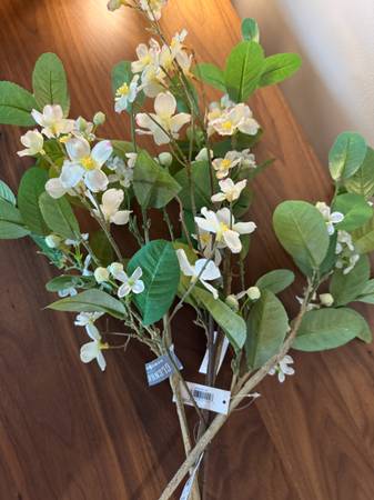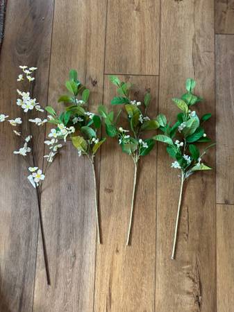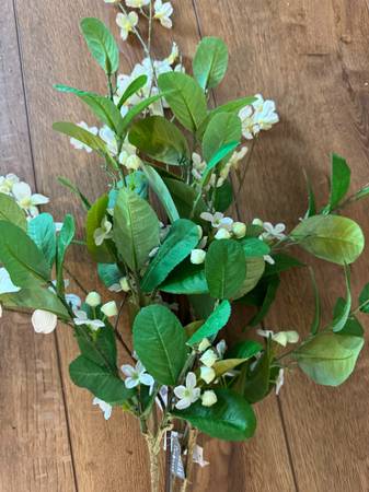GLENVIEW Home & Garden QUALITY faux floral stems with green leaves and white blossoms