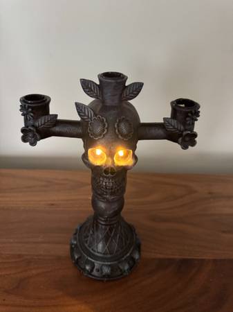 Halloween Martha Stewart Skull Gothic Candle Holder LED Lighted Eyes NWOT