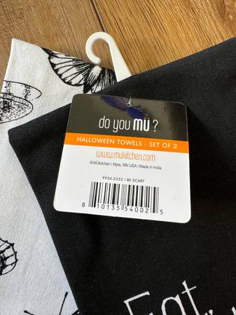 MUKitchen Set of 2 Halloween Towels 100% COTTON Eat, Drink, & Be Scary include "more ads by this user" link 100% Cotton Oversized- 15 in. x 22 in. Hanging loop Brand: mukitchen “Put the fun in...