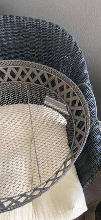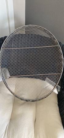 Sturdy metal tray is perfect for showing off your decor on a coffee table, side table, dining table, or even roll your towels and tier them up and put in the tray for a bathroom setting. Size is 18 inches across the center in the widest part and 22 inches across from handle to handle. Note the nicely woven metal around the outside. Pick up is in Apple Valley less than five minutes from Kohls department store.