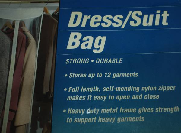 *) Hanging Dress and Suit Bag. Whitney Design Inc. Dimensions: 64" Long x 20" Deep x 15" Wide. Heavy duty metal frame to support heavy garments. Stores up to 12 garments. In Excellent Condition - Brand New $8